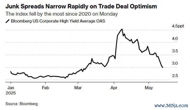 本周前两个交易日,投资级债券利差已收窄8个基点中国股票配资网官网,创下2023年3月以来最大两日跌幅;而周一垃圾债券利差跌幅更是创2020年11月以来之最。